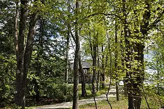 The house was designed by Alexander Wadsworth Longfellow and built in 1888. Originally a summer house three stories in height, this Shingle style house was reduced to two stories in 1950 when it was prepared for year-round occupancy. Its style is reminiscent of early work of H. H. Richardson, in whose firm Longfellow served as a draftsman. The house was built for a pair of spinster sisters, Ella and Ida Mason, who were friends of Raphael Pumpelly, whose summer estate was nearby. The house was occupied in 1910 by James Bryce, then the UK Ambassador to the United States, and was informally dubbed the "British Summer Embassy". It was also used as a summer house by Sir Cecil Spring Rice, also a UK ambassador, and Henry White, an American ambassador.[2]