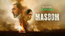 Masoom is an Indian Hindi-language psychological thriller television series created by Gurmeet Singh based on the 2018 Irish drama series Blood by Sophie Petzal for Disney+ Hotstar.[1] The series stars Boman Irani, Samara Tijori, Upasana Singh, Manjari Phadnis, Saariika Singh, Veer Rajwant Singh and Manu Rishi in the lead roles.[2] The series was released on June 17, 2022.