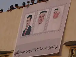 Beginning in February 2011, Bahrain saw sustained pro-democracy protests, centered at the Pearl Roundabout in the capital of Manama, as part of the wider Arab Spring. Authorities responded with a night raid on 17 February (later referred to by protesters as Bloody Thursday), which left four protesters dead and more than 300 injured.[11] In March, martial law was declared and Saudi troops were called in. Despite the hard crackdown and official ban, the protests continued.[12]