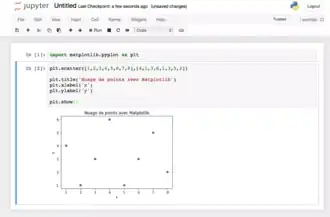 In education and data science, Matplotlib is frequently used to teach programming and data visualization. It integrates with Jupyter Notebook, allowing students and instructors to generate inline plots and interactively explore data within a notebook environment.[12] Many educational institutions incorporate Matplotlib into their curricula for teaching STEM concepts,[13] and it is widely featured in tutorials, workshops, and open online courses as a primary plotting library.