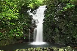 Matsuura City is located in the northeastern part of the Kitamatsuura Peninsula in northwestern Nagasaki Prefecture, facing Imari Bay from the Genkai Sea to the north, and bordering Imari City in Saga Prefecture to the east. The inland area to the south of the city is a hilly lava plateau with little flat land. Rivers such as the Sakase River, Tatsuo River, Sasa River, Chokawa River, and Imabuku River flow through the city, and at the mouth of the river is an area of singing sand known as "Gigigahama".[2][3]