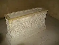 The mausoleum is divided into two parts: overground and underground. The upper part of the mausoleum was used for accomplishment of cultic rites, but there was a burial vault. There are three small windows with stone shebeke-lattices in the southern, eastern and western facets of the mausoleum. The burial vault also has a window with shebeke-lattice. The whole mausoleum was revetted with narrow and wide rows of tightly urged to each other and finely carved stones. Ancient ornaments in the form of grid are saved within a cupola-shaped vault. Admixtures of wool fabrics strengthening the mausoleum were used in the plastering of its walls. Light cuts (up to 3 millimetres (0.12 in)) filled with colored mixture were made in plastering.