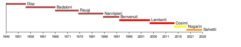 15 | Furio Diaz[6] | 1944 | 1946 | Italian Communist Party |