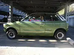 The Mazda Chantez (chassis code KMAA) is a two-door kei car that was introduced by Mazda in July 1972. The Chantez had a longer wheelbase at 2,200 mm (86.6 in) than most of its competitors and featured the powerful two-stroke "AA" engine also seen in the Porter. With 35 PS (26 kW; 35 bhp), top speed was 115 km/h (71 mph) and the 400 m (0.2 mi) sprint was dispatched in a sprightly 20.6 seconds.[1] In more recent testing (early 2000s) of a 1972 GF II, 0–100 km/h came up in 35.8 seconds.[2] The engine was installed longitudinally in the front of the vehicle powering the rear wheels, and the spare tire was installed next to the engine on the right side.[3][4]