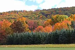 McCauley Mountain (also known as McAuley Mountain[2] or McCauley's Mountain[3]) is a mountain in Columbia County, Pennsylvania, in the United States.[1] Its official elevation is 1,571 feet (479 m) above sea level. The mountain is a synclinal mountain. Main rock formations on and near it include the Mauch Chunk Formation and the Pottsville Formation. There are also coal deposits on it. The coal deposits were discovered in 1826 and mining of them began in the 1850s. However, coal mining on the east side of the mountain proved to be a commercial failure. There are a number of ponds on the mountain, some of which were created during the mining. However, others are natural vernal pools. Some of the ponds are surrounded by hemlocks and deciduous trees. Major streams near the mountain include Scotch Run, Beaver Run, and Catawissa Creek. The mountain is named after Alexander McCauley, who settled there in 1774.