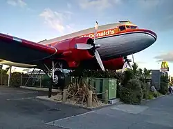 In 1990, McDonald's purchased a former car yard site for its Taupō restaurant, which opened in November that year. The site came with a decommissioned Douglas DC-3 aircraft, complete with intact cockpit. The plane has become a tourist landmark, and now contains a seating area for diners.[17][18]