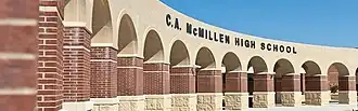C.A. McMillen High School, commonly known as McMillen High School, McMillen, or MHS, is a secondary school serving grades nine and ten, located in the East Cluster of the Plano Independent School District. Murphy Middle School and Armstrong Middle School feed into McMillen. Students graduating from McMillen will attend Plano East Senior High School for the eleventh and twelfth grades. For the 2021-2022 school year, the school received a rating of "C" by the Texas Education Agency.[2]