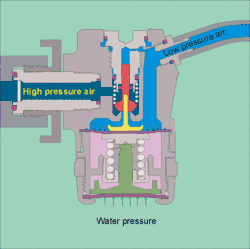 The cold water versions use a novel dr system. There's a secondary diaphragm like all the others, but instead of using a fluid or grease to transfer the ambient pressure there is a mushroom shaped part inside called a "hydrostatic transmitter" that transmits the force from the secondary diaphragm to the main diaphragm.