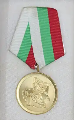 The Medal "1300th Anniversary of Bulgaria". Established in 1981, it was awarded until 1990. It was awarded to deserving prominent citizens in honor of the 1300th Anniversary of the Bulgarian State.[1]