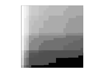 Conceptually, the resulting vector can be visualised as establishing a boundary on the matrix as suggested by the following diagram, where the red entries are all larger than :