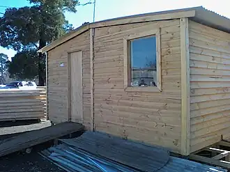 Mediagua, is the name given in Chile to a type of prefabricated house, constructed of wood panels, which can be erected in less than a day. The traditional model has an area of 18 square metres (190 sq ft).
