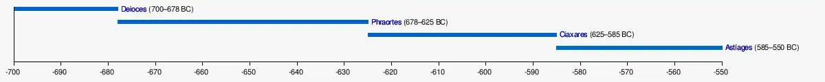Using the chronology proposed by Herodotus, a putative timeline of the reign of Median kings can be constructed. (Note that Scythian rule has no specified dates in this chronology.)