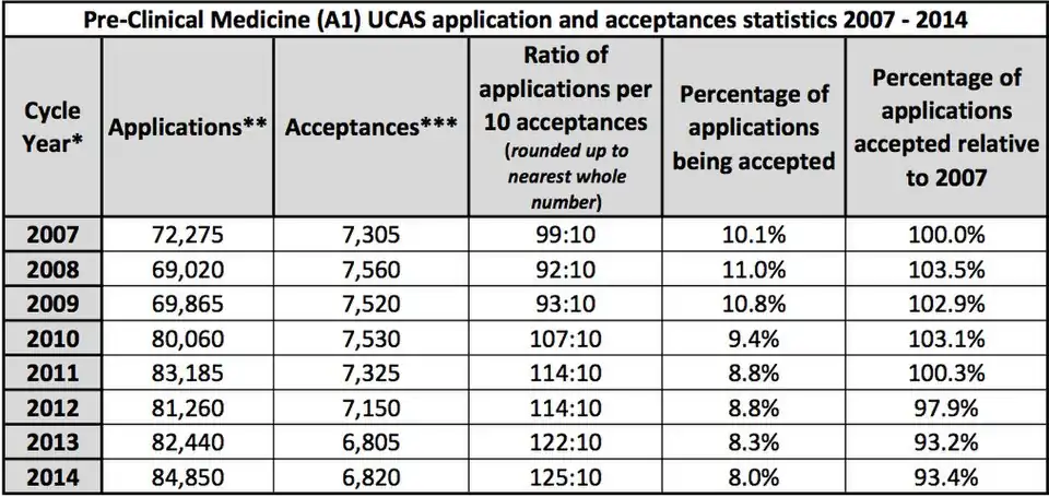 - ^ "Medical Schools Council Statistics". Medical Schools Council Schools. Retrieved 24 May 2014.