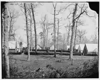When the war began, there were no plans in place to treat wounded or sick Union soldiers. After the Battle of Bull Run, the United States government took possession of several private hospitals in Washington, D.C., Alexandria, Virginia, and surrounding towns.[2] Union commanders believed the war would be short and there would be no need to create a long-standing source of care for the army's medical needs. This view changed after the appointment of General George B. McClellan and the organization of the Army of the Potomac. McClellan appointed the first medical director of the army, surgeon Charles S. Tripler, on August 12, 1861. Tripler created plans to enlist regimental surgeons to travel with armies in the field, and the creation of general hospitals for the badly wounded to be taken to for recovery and further treatment.[3] To implement the plan, orders were issued on May 25 that each regiment must recruit one surgeon and one assistant surgeon to serve before they could be deployed for duty. These men served in the initial makeshift regimental hospitals. In 1862 William A. Hammond became surgeon general and launched a series of reforms.[4] He founded the Army Medical Museum,[5] and had plans for a hospital and a medical school in Washington; a central laboratory for chemical and pharmaceutical preparations was created; much more extensive recording was required from the hospitals and the surgeons. Hammond raised the requirements for admission into the Army Medical Corps. The number of hospitals was greatly increased, and he paid close attention to aeration.[6] New surgeons were promoted to serving at the brigade level with the rank of major. The surgeon majors were assigned staffs and were charged with overseeing a new brigade-level hospital that could serve as an intermediary level between the regimental and general hospitals. Surgeon majors were also charged with ensuring that regimental surgeons were in compliance with the orders issued by the medical director of the army.[7]