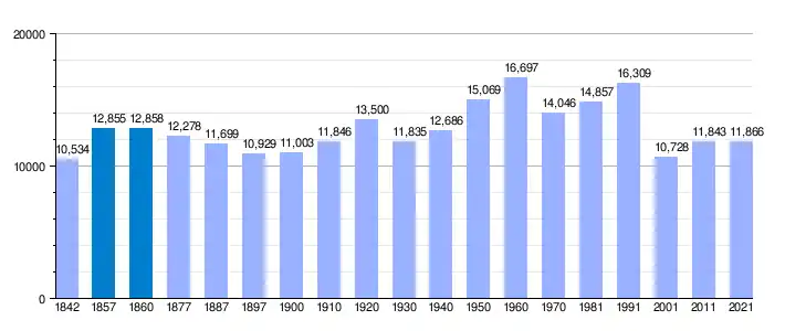 demographic vertical bar chart of Medina-Sidonia[6] between 1842 and 2021 |