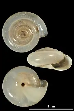 Shell of Mediterranea hydatina hydatina (specimen at MNHN, Paris) | |
