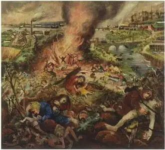 Melbourne Burning is a 1946-1947 painting by Australian artist Arthur Boyd.[1] It has been described as "his apocalyptic image of Melbourne burning, like a Biblical narrative in the context of the second world war".[2] The painting has been reported to have displayed in the Perth office of Robert Holmes à Court.[3] It was purchased by David Walsh for AUD 3.2 million.[4] It is "one of Walsh's favourite works".[5] The painting is the collection of the Museum of Old and New Art.[6]