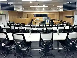 Mooting at Melbourne Law School was made mandatory in 1958.[4]: 163 Mooting continues to be mandated as assessment at Melbourne Law School for some core J.D. subjects, such as constitutional law,[19] and is widely pursued by the student body in both internal and external moot court competitions. Melbourne Law School's internal moot court competition takes place in Melbourne Law School's purpose-built moot court.[20] It is organised and run each year by the Melbourne University Law Students' Society, and is currently sponsored by a number of commercial law firms.[21] Melbourne Law School students have achieved success in multiple international moot court competitions. Teams from Melbourne Law School have won the Philip C. Jessup International Law Moot Court Competition and the ELSA Moot Court Competition three times, and in 2012 a team from Melbourne Law School won the IASLA Space Law Moot Court Competition.[22] A Melbourne Law School team also won the inaugural Victorian Championship Moot in 2013.[23]