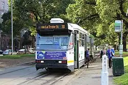 Route 30 is operated out of Southbank depot with E class trams.[22][23][24] In September 2003 operation of the route was transferred from Kew depot to Southbank.[25] It was operated by W class trams until 23 December 2014. Until January 2019, Route 30 was the only tram route on the network that neither operated at night nor on weekends. The A class tram very occasionally runs on the route 30.