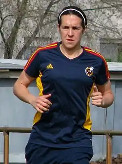 She has been a member of the Spain women's national football team, playing the qualification stages for the 2007 World Cup,[3] the 2009 European Championship[4] and the 2011 World Cup.[5]