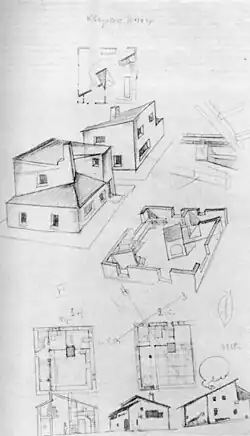 Sketches of a square workshop house, 1920–1921 | One of the "round" versions of the project, 1922 |