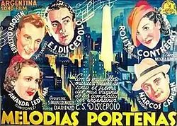 Melodías porteñas (Buenos Aires Melodies) is a 1937 Argentine film, a musical directed by Luis Moglia Barth, who also co-wrote it. It is one of the most iconic films of the Golden Age of Argentine cinema. It is based on a struggling radio station, and depicts the events leading up to and following the disappearance of the station's star tango singer, played by Amanda Ledesma. It may be seen as an exposé of the sensationalism of radio stations of the period. Enrique Santos Discépolo won praise for his performance as the increasingly desperate director of the station.