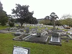 The hillside cemetery occupies an area of approximately 2.5 hectares (6 acres) and is divided into denominational sections containing a total of approximately 5,000 graves.[4] It is composed of two parts, the upper cemetery and the lower cemetery, separated by Middleton Road.[2] Easily accessed by pedestrians the site has a number of mature native and exotic trees and a range of diversity, style and age of memorials and grave fittings on the plots.[1]