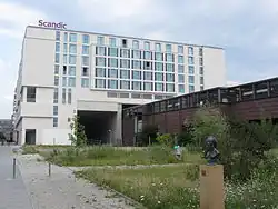 Though it is one of the newest stations on the U-Bahn, it is located on the first Stammstrecke line of 1902, where its northern branch crosses the Landwehr Canal on a viaduct and passes north through part of the Scandic Hotel before heading underground towards Potsdamer Platz. With the building of the Berlin Wall on 13 August 1961, train service was interrupted, and for a brief time in 1991 the tracks served for the experimental M-Bahn maglev line, stopping at Bernburger Straße station slightly to the north.