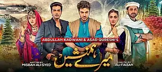 Meray Humnasheen (Urdu: میرے ہمنشیں, transl. My Partner) is a 2022 Pakistani television drama series, written by Misbah Ali Syed, directed by Ali Faizan and produced by Abdullah Kadwani and Asad Qureshi. The series stars Hiba Bukhari, Ahsan Khan, Shahzad Sheikh, Syed Jibran, Momina Iqbal & Moomal Khalid.[1] It revolves around the journey of an aspiring doctor, who aims to bring medical care in her area as she has lost her parents due to its unavailability and faces several hurdles to achieve it. It aired from 6 May 2022 to 1 October 2022, every Friday and Saturday, with a total of 43 episodes.[2]