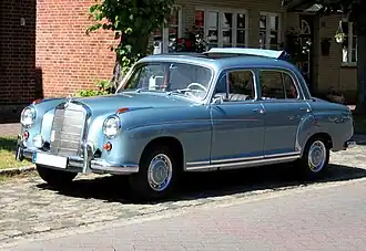 The Mercedes-Benz W128 is a 6-cylinder luxury car produced by Mercedes-Benz as the 220 SE from 1958 to 1960 as a sedan, coupé, and cabriolet. A more powerful version of the near-identical W180 220 S, it gained the fuel-injected M127 version of Mercedes' 2.2 L (134.3 cu in) M180 engine, and an 'E' in its name for Einspritzung, German for petrol injection. The 220 SE was the last new model of the "Ponton" range which had design and styling roots tracing to the 1953 W120 sedan it was derived from.