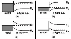 - ^ Tejedor, C; Flores, F; Louis, E (1977-06-28). "The metal-semiconductor interface: Si (111) and zincblende (110) junctions". Journal of Physics C: Solid State Physics. 10 (12). IOP Publishing: 2163–2177. Bibcode:1977JPhC...10.2163T. doi:10.1088/0022-3719/10/12/022. ISSN 0022-3719.