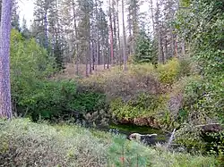 The springs were probably created about one and a half million years ago when Black Butte erupted blocking a north-flowing river. With the newly formed butte blocking the natural channel, water backed up south of the mountain creating a swampy meadow area. Over time, the water seeps through porous rocks under the butte and now emerges on the north side of Black Butte at Metolius Springs.[1][2]
