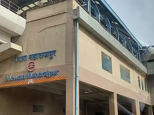 Mewla Maharajpur is an elevated station on the Violet Line of the Delhi Metro. It is located between NHPC Chowk and Sector 28 station on the line from 6.[1]