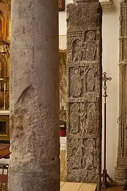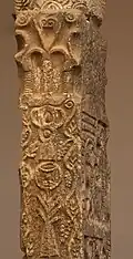 The current church is built on the mosque, so it is oriented southeast in direction toward Mecca. For which construction, different elements of the previous Visigothic building were reused, because of that a horseshoe arcade supported on Visigothic pilasters has been preserved with sculpted decoration of figurative themes, unusual in this type of remains. The Pilaster of El Salvador, shows in one of its faces various Visigothic miraculous scenes from the life of Jesus: the Cure of the Blind, the Resurrection of Lazarus, the Samaritan and the Hemorroísa, as well as other themes of eucharistic hue that alluding to Christ as the salvation. Its crude treatment shows the abandonment in which the work had fallen on the stone.