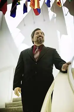 An internationally recognized expert in international criminal law, Scharf has testified before the U.S. Senate Committee on Foreign Relations[9] and the House Armed Services Committee;[10] his interviews and op eds have appeared in The Washington Post,[11] Los Angeles Times, The Boston Globe, The Christian Science Monitor, and International Herald Tribune; and he has appeared on ABC World News Tonight, the NBC Today Show, Nightline, The O'Reilly Factor, The NewsHour with Jim Lehrer,[12] Minnesota Public Radio,[13] Public Radio International (PRI),[14] The Charlie Rose Show,[15][16] the BBC, CNN,[17] Voice of America,[18] and NPR. Scharf also hosts Grotian Moment, an award-winning International Criminal Law Blog. He is a frequent contributor of scholarly articles to the American Society of International Law. Scharf was selected as a lifetime member of the Council on Foreign Relations in 2019.