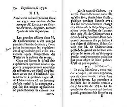 - ^ From: Henri Louis Duhamel du Monceau. Expériences et réflexions sur la culture des terres, faites pendant l'année 1752. 1753. p. 50-51.