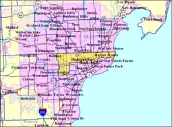 From 1982 until the 1992 redistricting, the 14th congressional district included the northeast Detroit (basically north of 6 mile and east of Ryan), Grosse Pointe Farms, Grosse Point Woods, Grosse Pointe Shores, Hamtramck, Harper Woods, the southern third of St. Clair Shores, Eastpointe, Center Line, Warren south of 10 mile and west of Van Dyke, all of Sterling Heights, Utica, Hazel Park, Madison Heights, and Troy south of about Big Beaver Road, and west of Rochester Road.[13] The district was represented by Dennis Hertel.