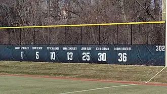 Five Spartan players (Roberts, Garvey, Yewcic, Gibson, Mulder) and two coaches (John Kobs and Danny Litwhiler), have their numbers retired in East Lansing. In addition, the stadium is named after Drayton McLane, a Michigan State alumnus and former owner of the Houston Astros. McLane and his wife Elizabeth donated funds to begin renovations of the stadium, located at the historic Old College Field, and the updated facility quickly made history when, on April 4, 2009, the first official game in the new stadium was played, and Spartan pitcher Nolan Moody threw a no-hitter against Northwestern. McLane donated funds for the building of the football facility at Baylor University, also named McLane Stadium. The baseball field was named for Spartan coach John Kobs in 1969.[2]