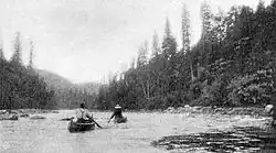 The French explorer and cartographer Samuel de Champlain included the Michipicoten River in a map of North America as early as 1632.[4]: 17 Later, in the days of the fur trade, this river provided access to James Bay by way of the Missinaibi and Moose rivers. Pierre-Esprit Radisson and Médard des Groseilliers are believed to be the first non-natives to travel this route. A French fur trading post was built at the river's mouth in the early 18th century, at a site sometimes called "Fort Michipicoten". Later, after the British triumph in the French and Indian War, the post was abandoned. It was eventually reopened later in the 18th century under the British, and the Hudson's Bay Company and North West Company both opened competing trading posts at the river mouth, with the former building trading posts along the river's route in the 1770s. In 1781, Philip Turnor, the HBC's first full-time surveyor, performed a detailed survey of the river, followed by many upgrades to the portages. The two companies merged in 1821, and the Moose/Missinaibi/Michipicoten route became the established supply route for HBC's Lake Superior District,[5] orienting the fur trade up to Hudson Bay rather than Montreal.