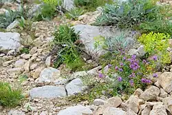 The fragmentarily preserved steppe areas of the reserve are of great value. They are found only on small unploughed remnant areas on the Volga coastal slopes, in the Zhiguli Mountains and Sengiley Hills. These are remnants of steppe vegetation that once covered most of the plateau of Samarskaya Luka. Although small in size, these areas of steppes cover all steppe types found in Samara Oblast: meadow (northern) steppes, true (southern) steppes consisting of Volga fescue and Stipa, as well as special variants of steppes such as shrub steppes, stony and sandy steppes.[8] Stony steppes are present on the open southern and south-western slopes of the Zhiguli Mountains. These areas range from a few tens of square metres to several hectares, with the largest being located on Strelnaya Gora and Molodetsky Kurgan (up to 13 hectares), as well as in the southern part of the Sengileevskaya Upland - on the chalk hills stretching along the bank of the Volga River from Podvalye to Klimovka. Shrub steppes are present in Zhiguli, as well as in the central, southern, and south-western parts of Samarskaya Luka, and in Shiryaevskaya, Askulskaya, and Brusyanskaya valleys. There are fragments of true steppes in areas that are not suitable for ploughing in the central and south-western parts of Samarskaya Luka. Meadow steppes are preserved in the south-east of Samarskaya Luka, with a few dozen hectares remaining in the Levashov forest steppe, a smaller area near the village of Podgory, and even smaller areas in the Shiryaevskaya, Kochkarskaya and Morkvashinskaya valleys. Sandy steppes can be found on the Usinsk coast, in the vicinity of Novinki village, in the Racheyskiy Bor, and on the islands.[8]