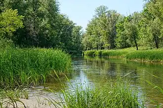 The ecosystems of the Volga floodplain are represented by floodplain oak forests, forests dominated by black poplar, white willow, silver poplar and black alder, talnik thickets and flood meadows.[2] In limestone mining areas, special natural communities have formed, including adits that have become Eastern Europe's largest[4] hibernation sites for bats.[2]