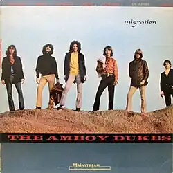 AllMusic has suggested that Migration reflects a stronger influence from Ted Nugent's input than the previous Amboy Dukes albums, citing the lack of drug influence in the lyrics due to Nugent's anti-drug stance, and the lack of a "spaced-out follow-up" to "Journey to the Center of the Mind", the band's biggest hit.[1] The band also took a more eclectic approach to composition on Migration.[1] "I'm Not a Juvenile Delinquent" is a cover of a song by Frankie Lymon and the Teenagers.[1]
