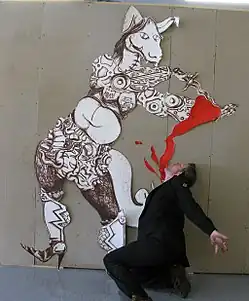 He has been active as both an exhibitor and an organizer at ABC No Rio[1] since 1995. His work has also been shown at several prominent venues, including P.P.O.W. Gallery,[2] the Queens Museum of Art, P.S.1, Arario Gallery, Nurture Art, and the Bronx Museum of the Arts. He has been in residence at The MacDowell Colony, both the workspace and the Governors Island residency at Lower Manhattan Cultural Council, and NY Arts Beijing.
