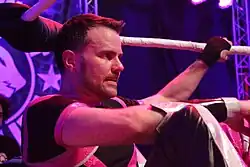 When Chikara returned from its one-year hiatus on May 25, 2014, with the You Only Live Twice iPPV, Quackenbush was revealed as the promotion's new Director of Fun.[57] In May 2016, Quackenbush announced he was coming out of his retirement to take on Johnny Kidd in what was billed as Kidd's retirement match on May 28.[58] The match, contested in eight three-minute rounds, ended in a 1–1 draw.[59] Quackenbush wrestled another match on December 3, 2016, losing to Drew Gulak in Gulak's Chikara farewell match.[60] Quackenbush's next match took place on April 1, 2017, when he was defeated by Zack Sabre Jr.[61] On September 2, Quackenbush defeated Johnny Kidd in a British Rules match.[62]