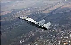 The Mikoyan MiG-29K (Russian: Микоян МиГ-29K; NATO reporting name: Fulcrum-D)[7] is a Russian all-weather carrier-based multirole fighter aircraft developed by the Mikoyan Design Bureau. The MiG-29K was developed in the late 1980s from the MiG-29M. Mikoyan describes it as a 4+ generation aircraft.[8][9]