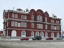 A military commissariat (Russian: Bоенный коммисариат, translit: voyenny kommisariat) was a local military administrative agency used in the Soviet Union to provide administrative and organisational military services. They were led by a military commissar (Russian: Bоенный коммисар, translit: voyenny kommisar) who worked in a political and bureaucratic role alongside a regional military commander who served as a traditional military official.[1] As is typical of Soviet phraseology, military commissariats can be referred to in Russian as 'voyenkomat' and military commissars can be referred to as 'voyenkom'; examples of Soviet portmanteaus.[2] Military commissariats were used in Soviet Russia and later Soviet Union from 1917 until the dissolution in 1991.[3] Soviet republics were divided into Krais and Oblasts and then into national districts and at each division a military commissariat was instated.[3] The role of the military commissariat at each stage of hierarchy differed; however, its core functions centred around administrative housekeeping regarding military personnel and military equipment and the provision of military training.[3] Other duties included troop mobilisation, forced conscription and punishments for draft dodging, preparing local men for service, registering all relevant weaponry including all machinery and cars in the region, delivering pensions to retired army personnel, and selecting and promoting officers.[3]