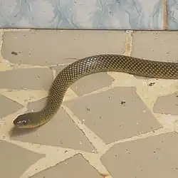 Dorsally, it is pale olive-brown or yellowish, with each smooth dorsal scale edged with black. Ventrally, it is uniformly yellow.[2]