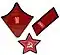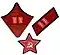 - Rank insignia, big (overcoat): on a rhombic padding, gold coloured border, one to four rhombic red enameled badges, gold coloured Soviet star small/ big