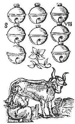 In the 16th century, the German painter Hans Schäufelein illustrated the proverb on the eight of bells in a deck of playing cards.[3]