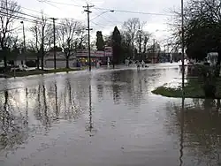 In January 2012, heavy rain from a winter storm caused many Oregon streams, including Mill Creek, to overflow their banks. Muddy water from the creek covered some of Salem's streets and parking lots and ran into homes and basements.[8] Further upstream, an estimated 40 percent of the city of Turner was inundated when Mill Creek rose 2.5 feet (0.76 m) above flood stage.[9]